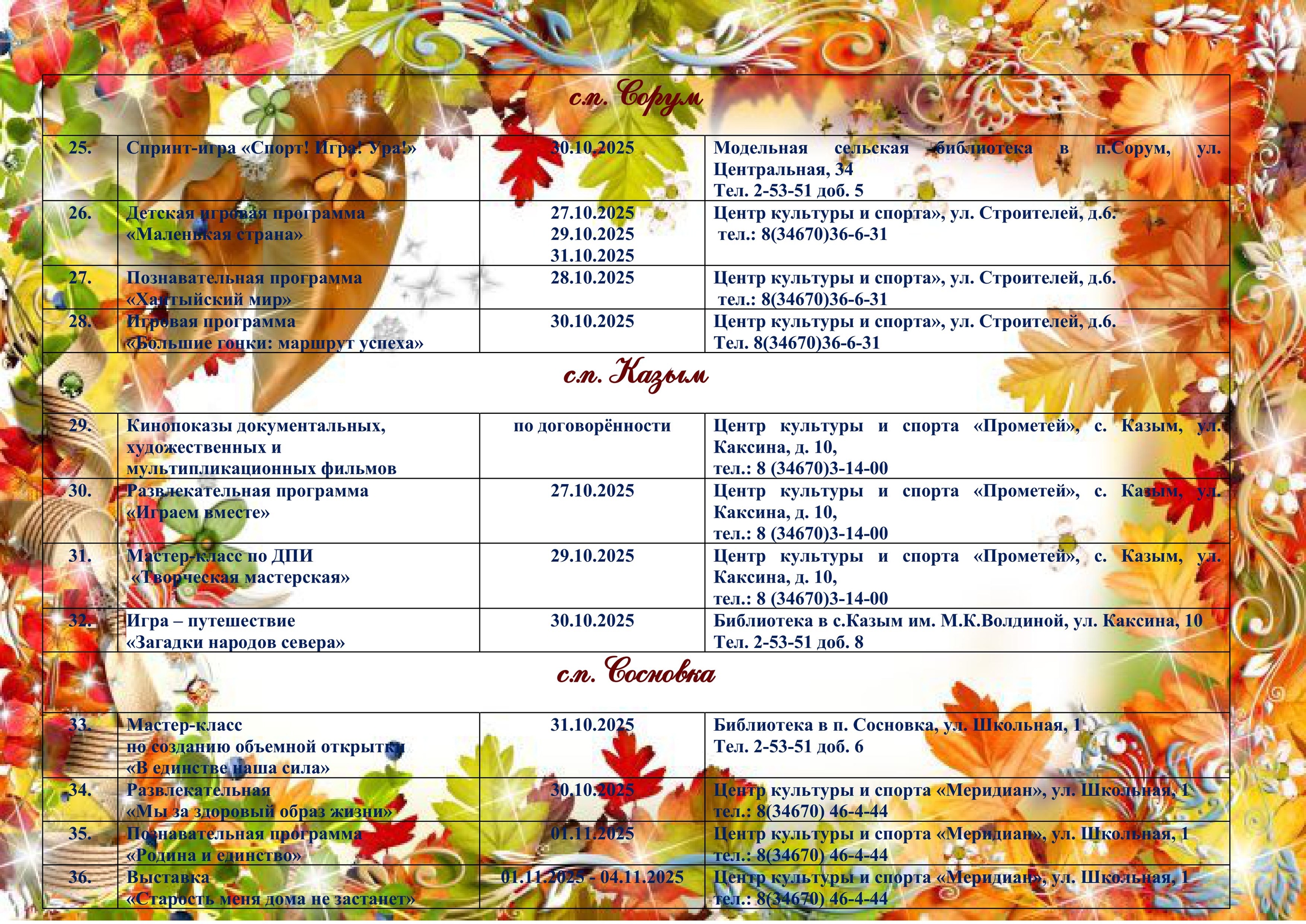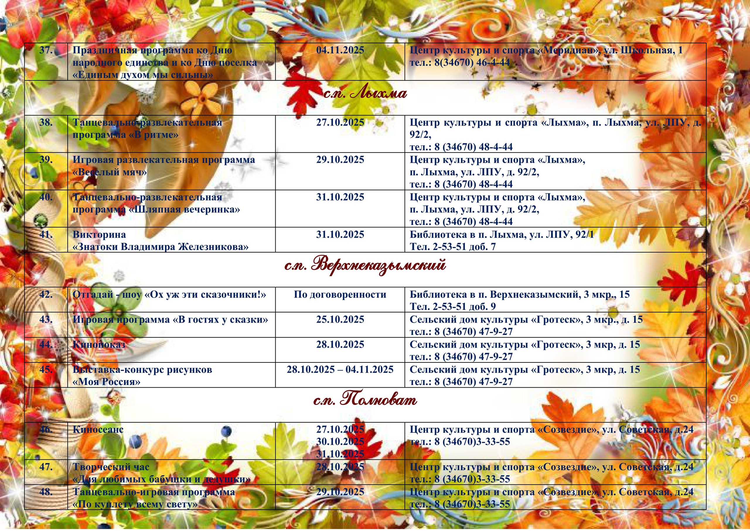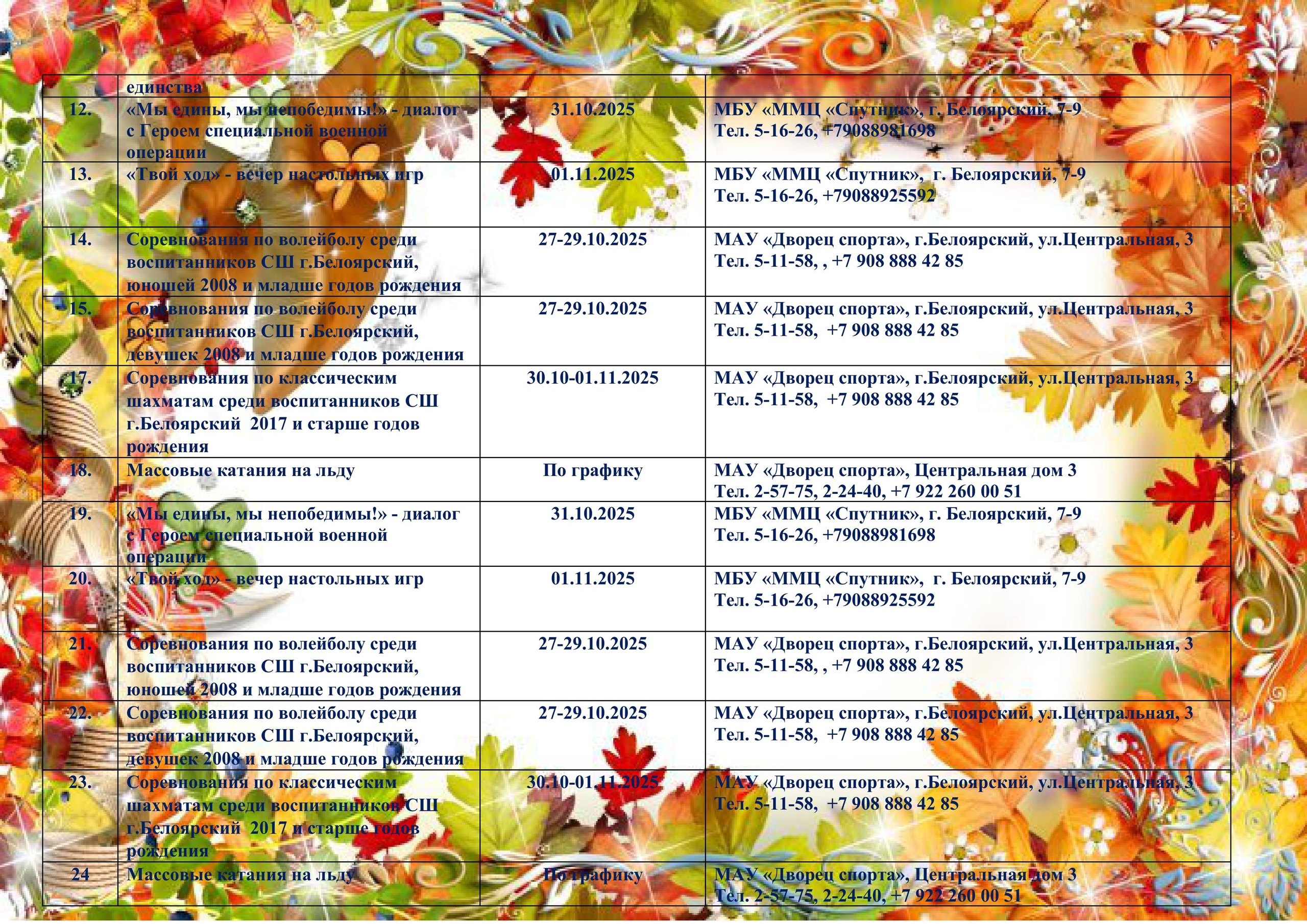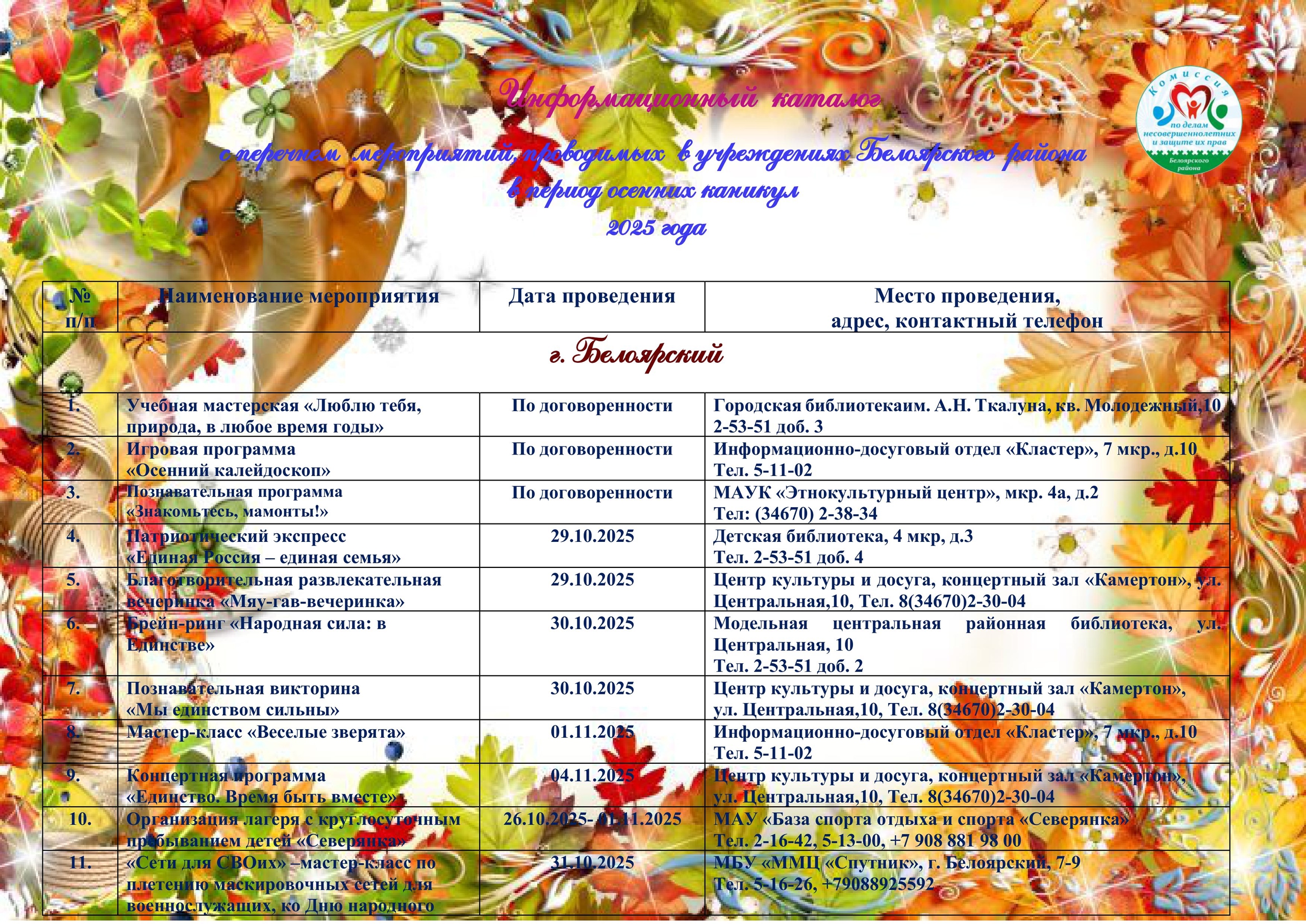 • Мероприятия, проводимые в учреждениях Белоярского района в период осенних каникул